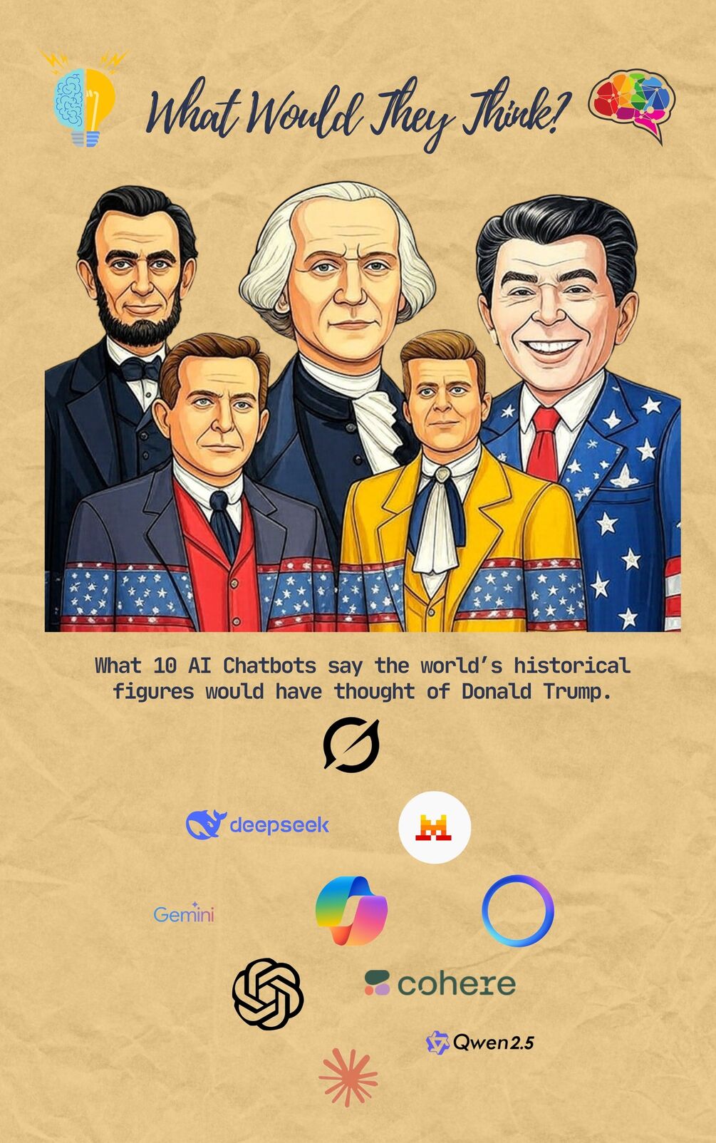 This booklet explores that very question. Through interactions with advanced AI chatbots, I've attempted to compile imagined digital echoes of figures like Abraham Lincoln, Andrew Jackson, Ulysses S. Grant, Gerald Ford, John F. Kennedy and many more former US Presidents. Essentially, I've asked 10 AIs what these figures would make of Donald Trump, his presidency, and his policies?